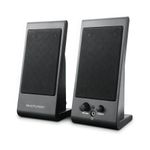 A caixa de som possui 3W Rms de potência, design estéreo, além de controle de volume.