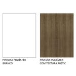 O acabamento da estrutura é branco fosco e as portas e frentes são em amadeirado Rustic. É feito em Pintura Poliéster ecológica de alta resistência, que confere maior durabilidade e durabilidade ao móvel e oferece proteção contra os efeitos da água e do calor.