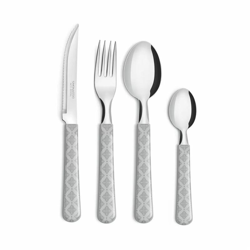 Faqueiro para 4 pessoas na cor branca com desenho Vitral