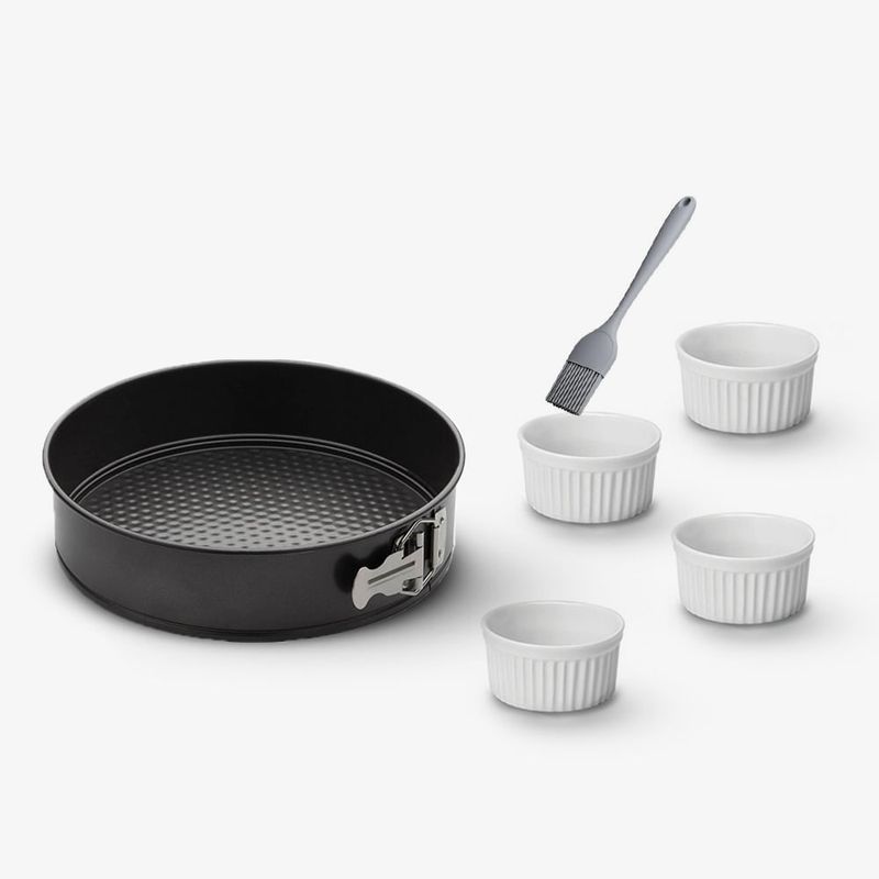 Uma forma com o fundo removível para facilitar na hora de desenformar o bolo ou a torta. Além disso, você recebe também um pincel para te auxiliar no momento de espalhar manteiga e óleo de uma forma muito mais rápida, uniforme e econômica.