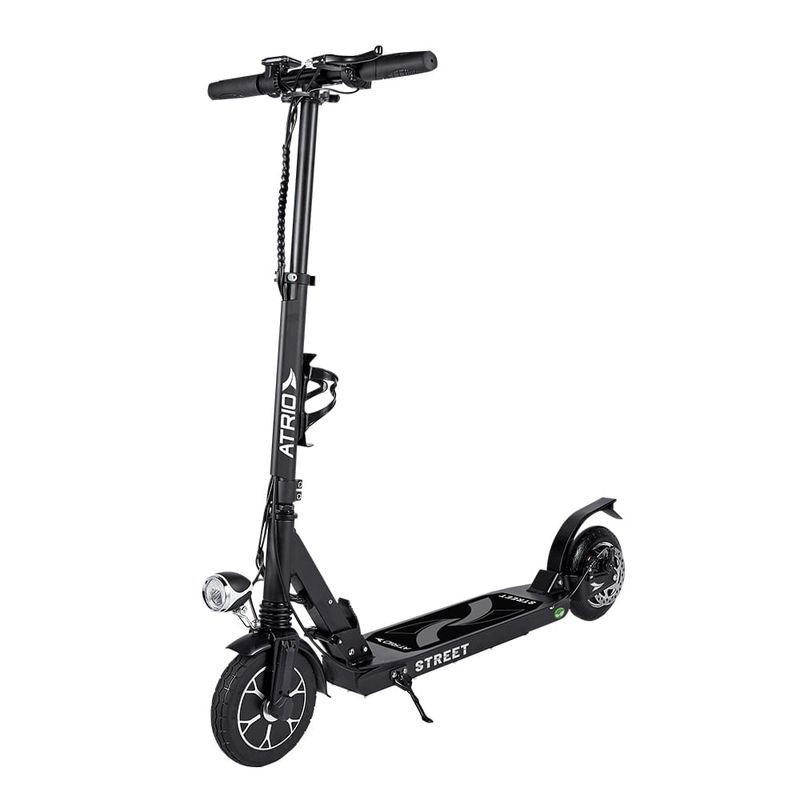O Patinete Street possui piloto automático, farol dianteiro integrado, acelerador e freio nas mãos, display multifuncional com indicador de velocidade e bateria, freio a disco, base antiderrapante, ajuste de altura e é dobrável.
