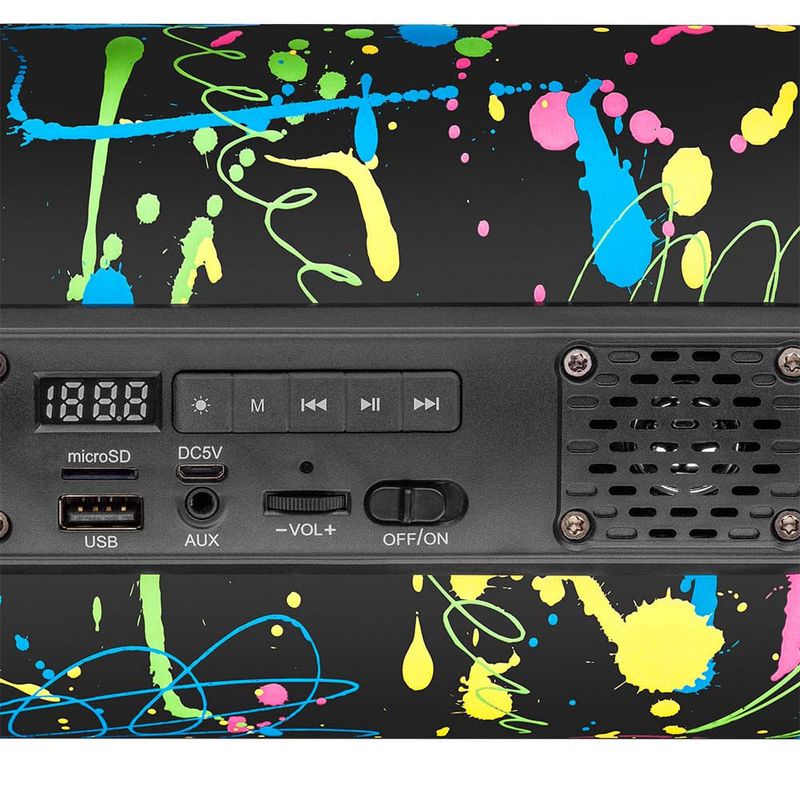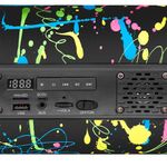 Paint Blast 80W, desenvolvido para te oferecer maior potência, são 80W de potência em 2 alto-falantes (Tweeter 1.4 polegadas + Subwoofer 4 polegadas) que trazem alta fidelidade ao som. Seus LEDS decorativos nos radiadores passivos deixam sua Paint Blast 80w preparada para animar ainda mais a sua festa! Possui bateria recarregável de 1.500 mAh, com autonomia de até 8 horas, para você aproveitar ao máximo a sua festa, e além disso você pode acompanhar o status da energia através do painel de controle.