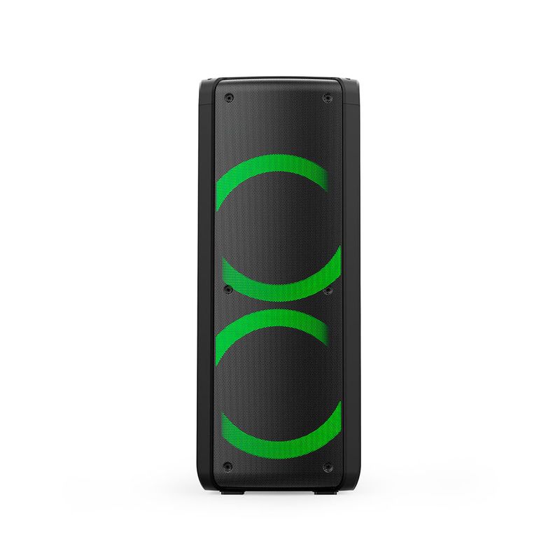 LEDs dinâmicos presentes nos falantes woofers frontais da PulseBox a deixam preparada para animar ainda mais a sua festa