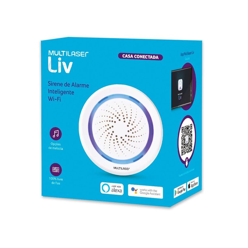 A Sirene de Alarme Inteligente Wi-Fi da série Multilaser Liv é essencial para um sistema de alarme completo. Integrada a sensores de presença e de abertura da série Multilaser liv, este produto oferece ainda mais segurança para o ambiente residencial ou comercial. Operando a baterias, este produto opera 100% sem fios, possui instalação plug-and-play e é configurável facilmente através de aplicativo gratuito Multilaser Liv. Com duração de alarme programável, opções configuráveis de melodia e design discreto, é o equipamento ideal para um ambiente mais moderno e conectado.